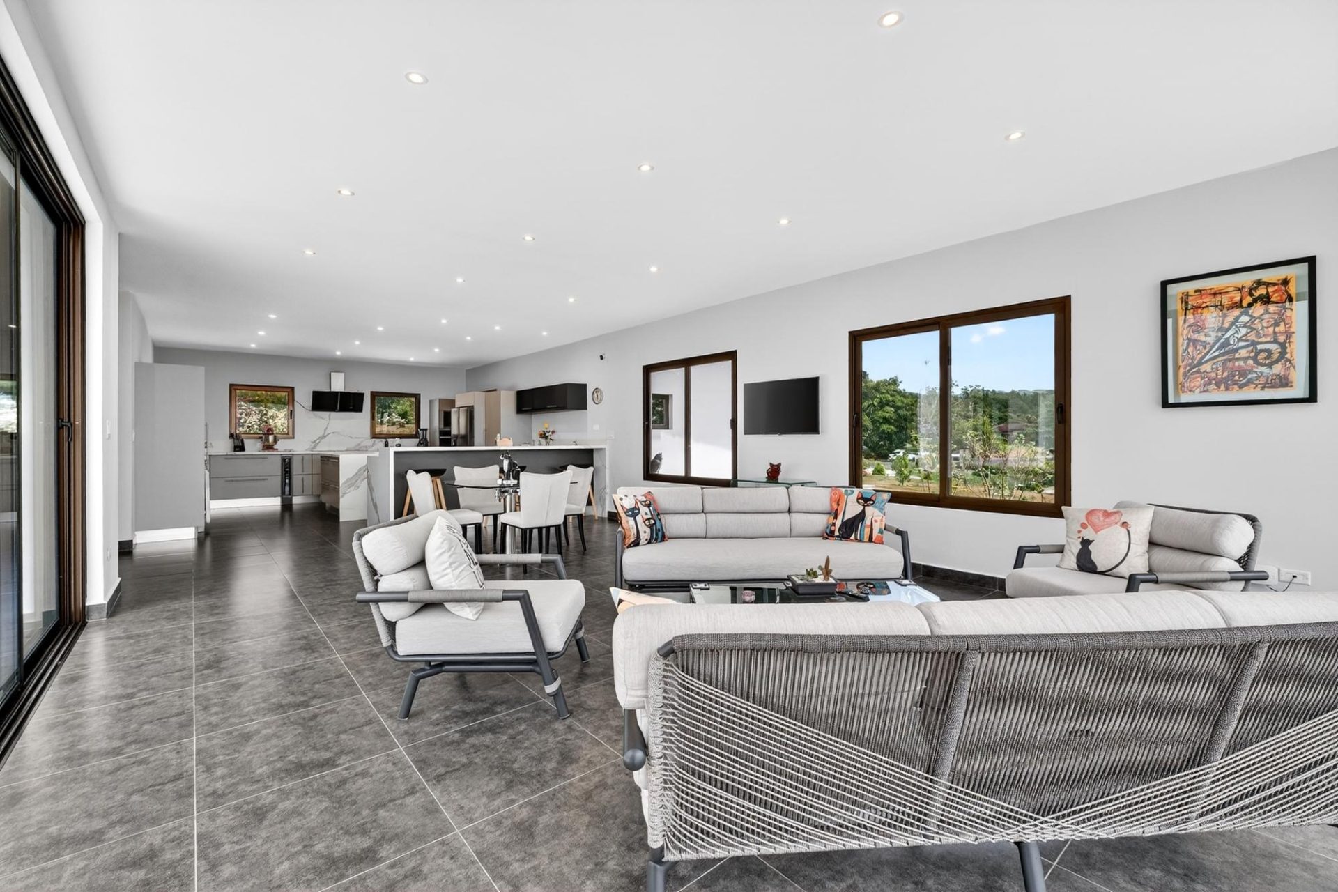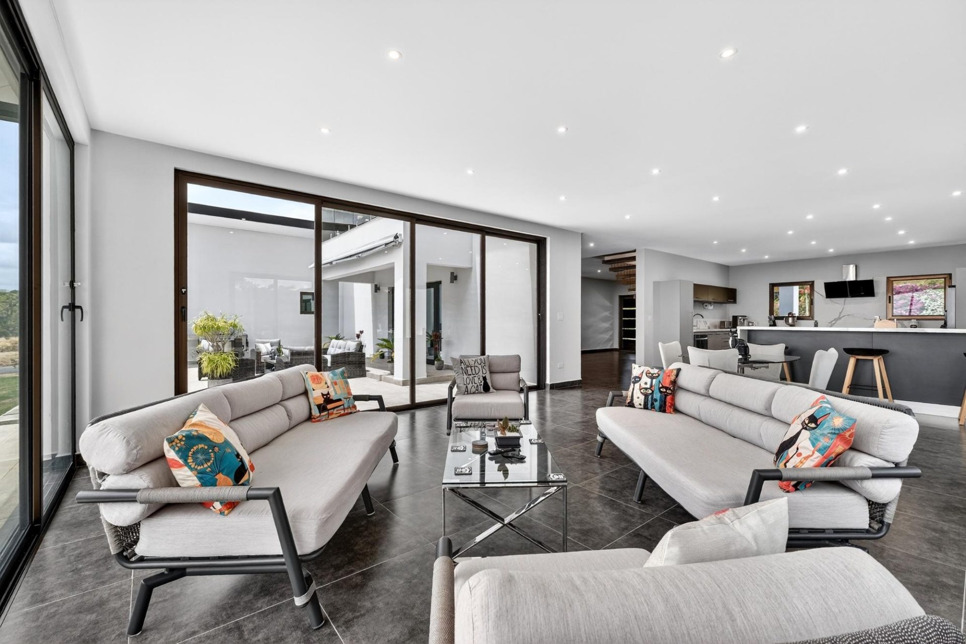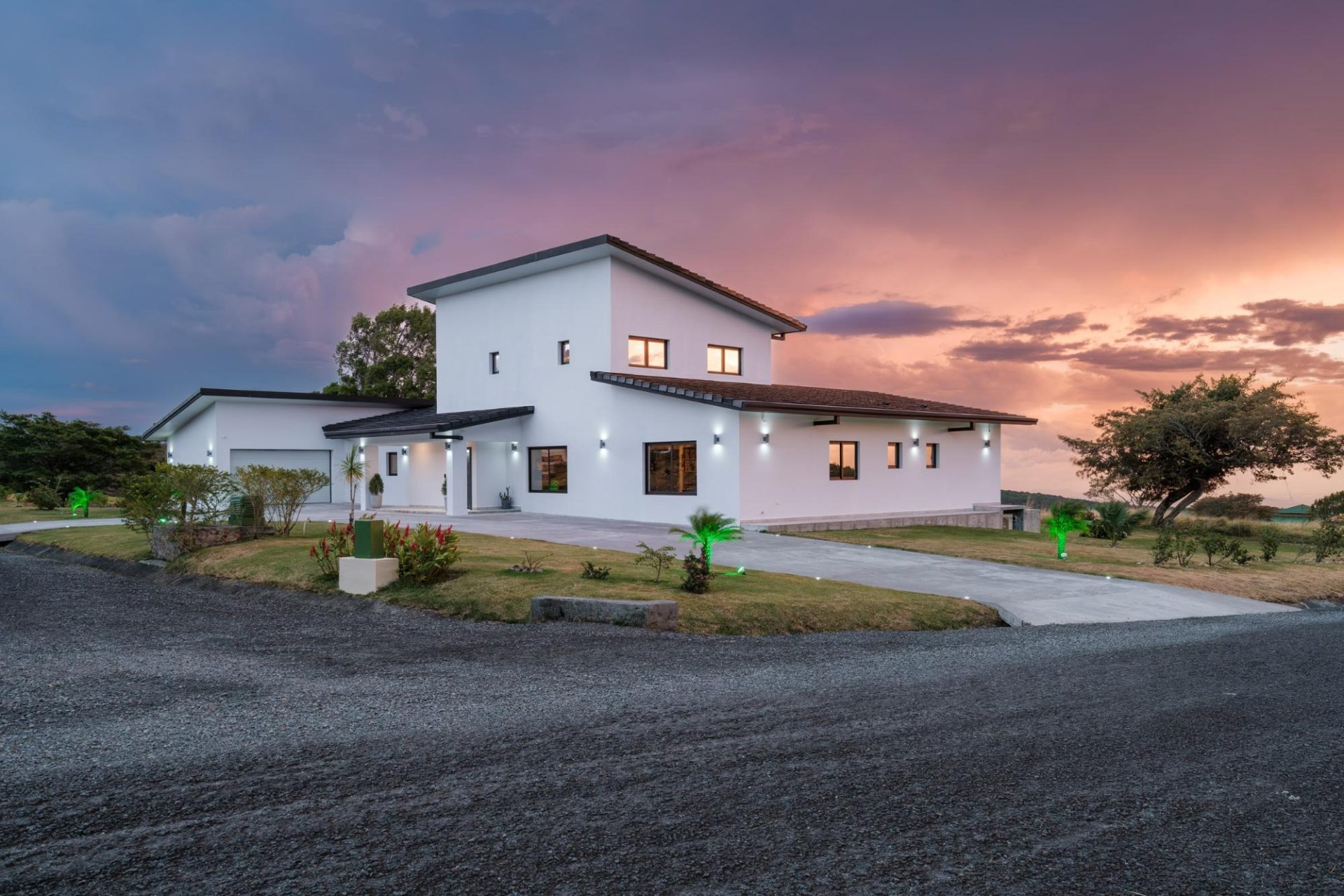 Impresionante residencia contemporánea ubicada en la comunidad privada de Boquete Country Club, con hermosas vistas a las montañas. Esta casa, cuidadosamente diseñada, cuenta con una impresionante escalera flotante y amplias salas de estar de concepto abierto, llenas de luz natural. La moderna cocina ofrece elegantes gabinetes, electrodomésticos de alta calidad y una gran isla con cascada, ideal para el entretenimiento. La planta principal incluye dos dormitorios de invitados, una sala de música o sala de entretenimiento, y una amplia lavandería y área de servicio. Toda la planta superior está dedicada a la lujosa suite principal, que ofrece un refugio privado con sala de estar, acceso a la terraza, un baño estilo spa con bañera profunda y ducha a ras de suelo, y un amplio vestidor con gabinetes a medida. Otras características destacadas incluyen puertas de madera noble a medida, tejas importadas de Portugal y un garaje para 1.5 autos. Ubicada a solo minutos del centro de Boquete, con seguridad las 24 horas.