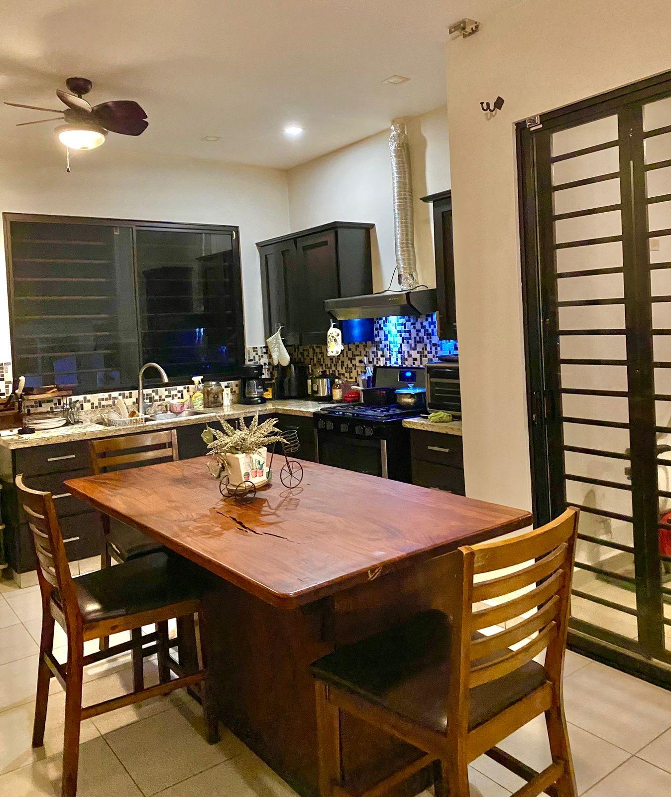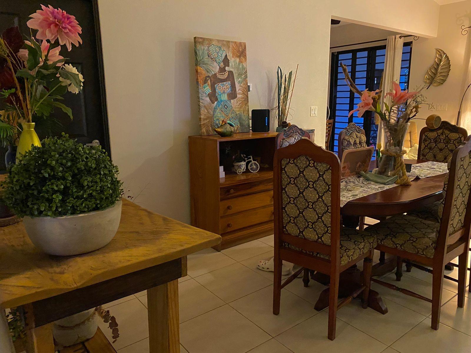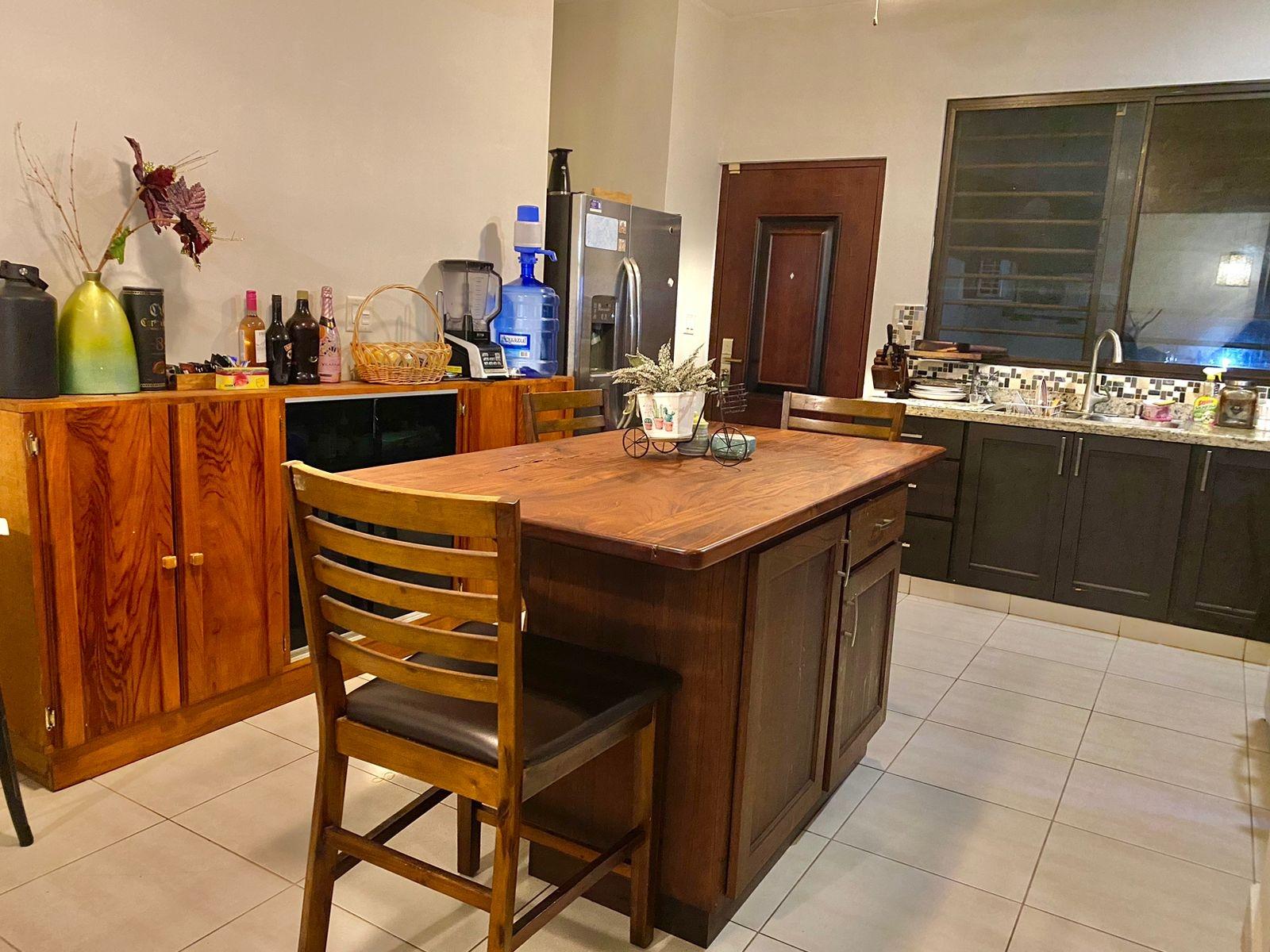 Descripción del listado Esta casa completamente amueblada de 4 dormitorios y 3 baños está disponible para la venta o alquiler en Las Colinas de San Carlitos, a solo 5 minutos del centro de David, Chiriquí. La casa está ubicada en un tranquilo vecindario residencial y ofrece una distribución espaciosa, iluminación natural y prácticas áreas al aire libre, ideales para una vida cómoda y el entretenimiento. Al entrar, le da la bienvenida una sala de estar y comedor luminosos y de concepto abierto con grandes ventanales y techos abovedados que realzan la sensación de espacio. Los tonos neutros y los muebles de buen gusto crean un ambiente cálido y listo para mudarse. La cocina cuenta con encimeras de granito, una isla central con asientos incorporados y un diseño en forma de U con mucho espacio para encimeras y gabinetes. Es perfecto para cocinar en casa y para las comidas diarias. El dormitorio principal incluye una cama tamaño king, un vestidor y un baño privado. Los dormitorios secundarios están amueblados con una combinación de camas matrimoniales y individuales, lo que ofrece arreglos flexibles para dormir para familias, invitados o inquilinos.
