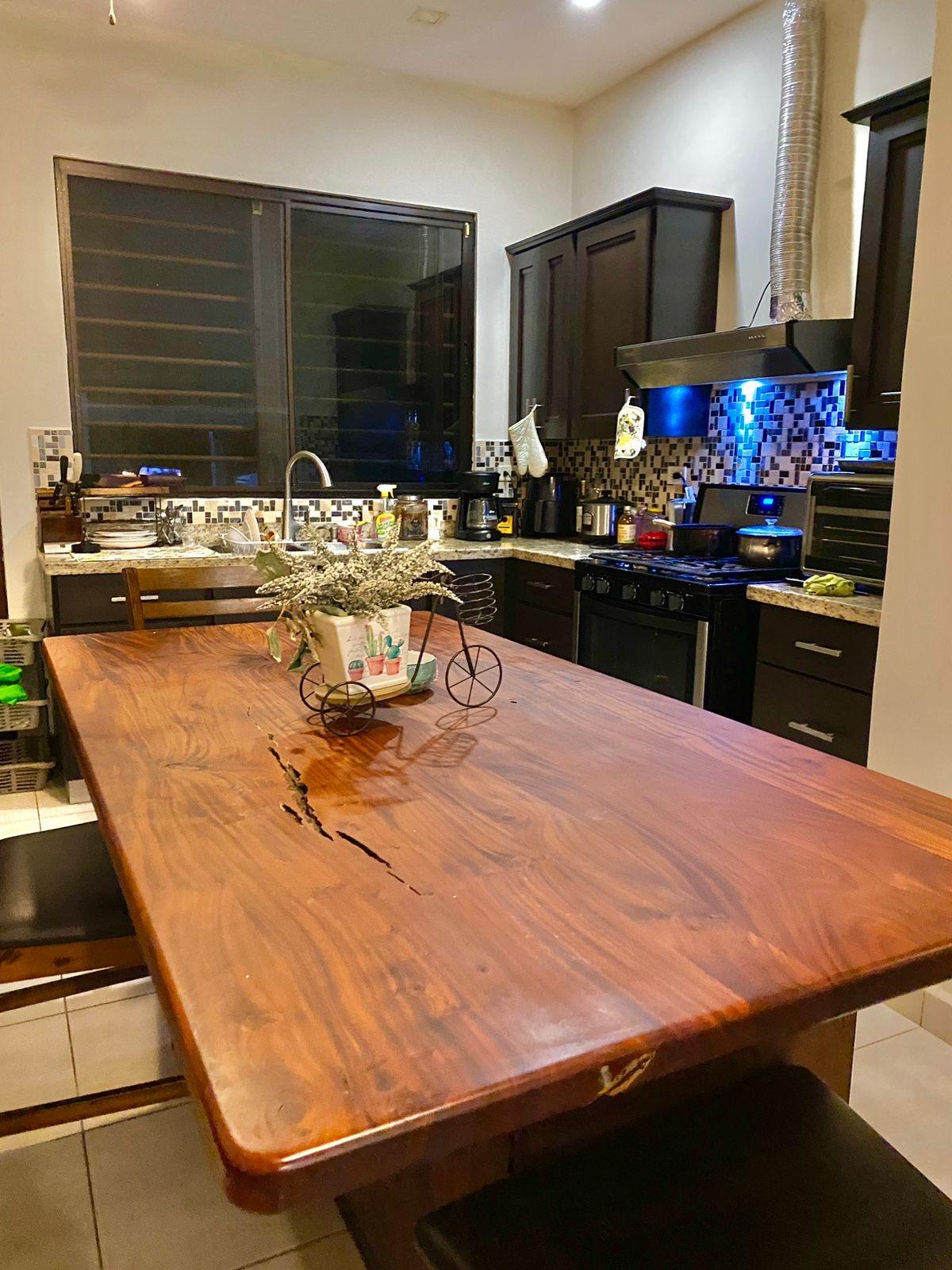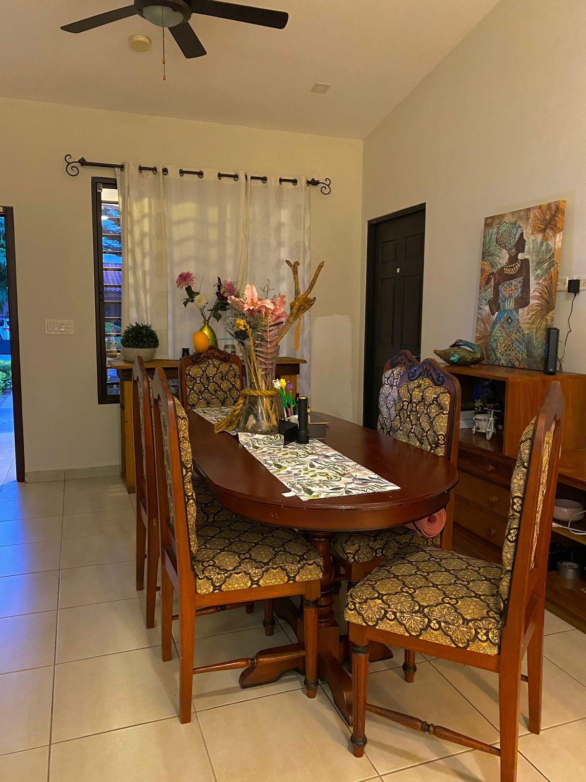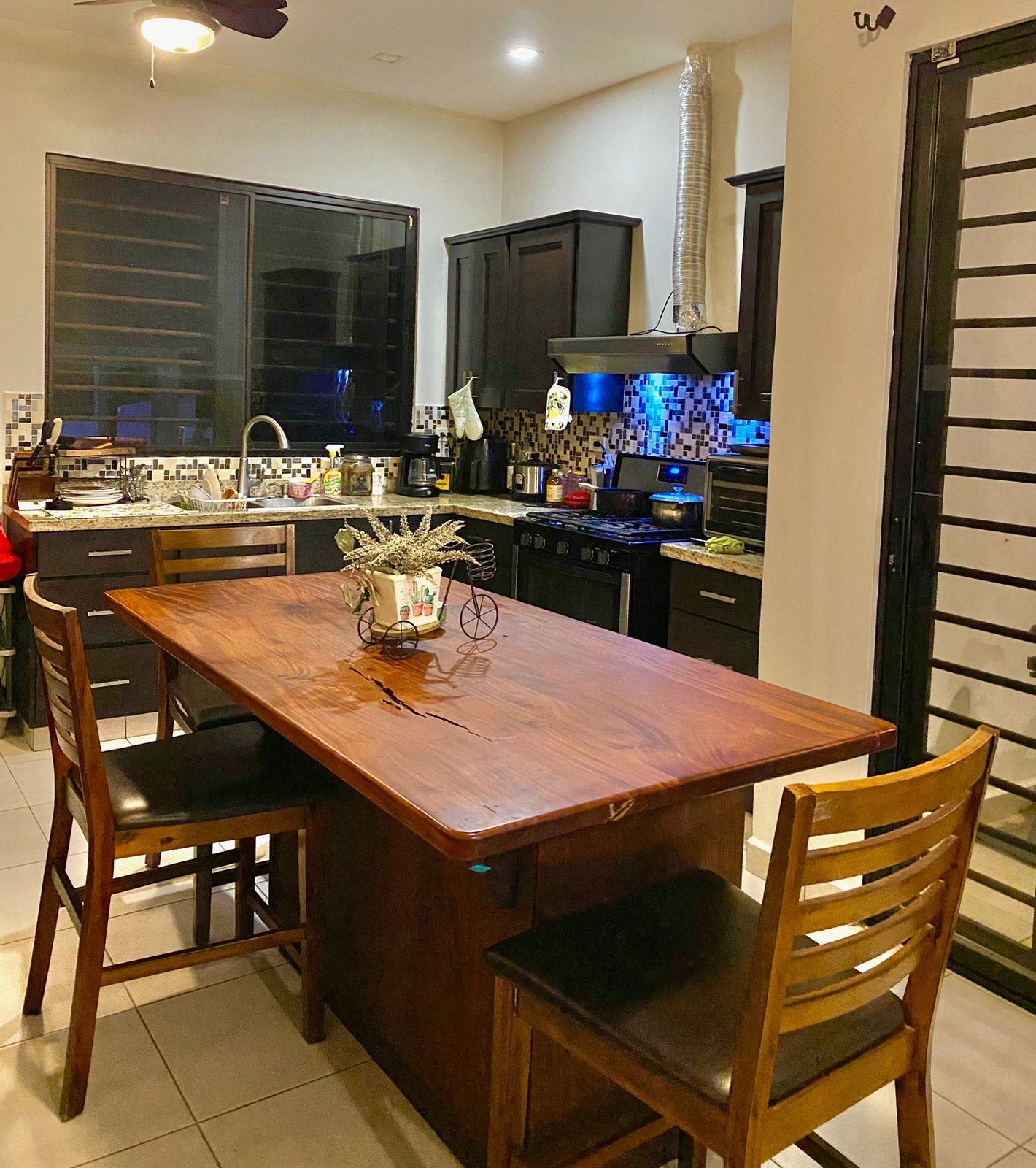 Descripción del listado Esta casa completamente amueblada de 4 dormitorios y 3 baños está disponible para la venta o alquiler en Las Colinas de San Carlitos, a solo 5 minutos del centro de David, Chiriquí. La casa está ubicada en un tranquilo vecindario residencial y ofrece una distribución espaciosa, iluminación natural y prácticas áreas al aire libre, ideales para una vida cómoda y el entretenimiento. Al entrar, le da la bienvenida una sala de estar y comedor luminosos y de concepto abierto con grandes ventanales y techos abovedados que realzan la sensación de espacio. Los tonos neutros y los muebles de buen gusto crean un ambiente cálido y listo para mudarse. La cocina cuenta con encimeras de granito, una isla central con asientos incorporados y un diseño en forma de U con mucho espacio para encimeras y gabinetes. Es perfecto para cocinar en casa y para las comidas diarias. El dormitorio principal incluye una cama tamaño king, un vestidor y un baño privado. Los dormitorios secundarios están amueblados con una combinación de camas matrimoniales y individuales, lo que ofrece arreglos flexibles para dormir para familias, invitados o inquilinos.