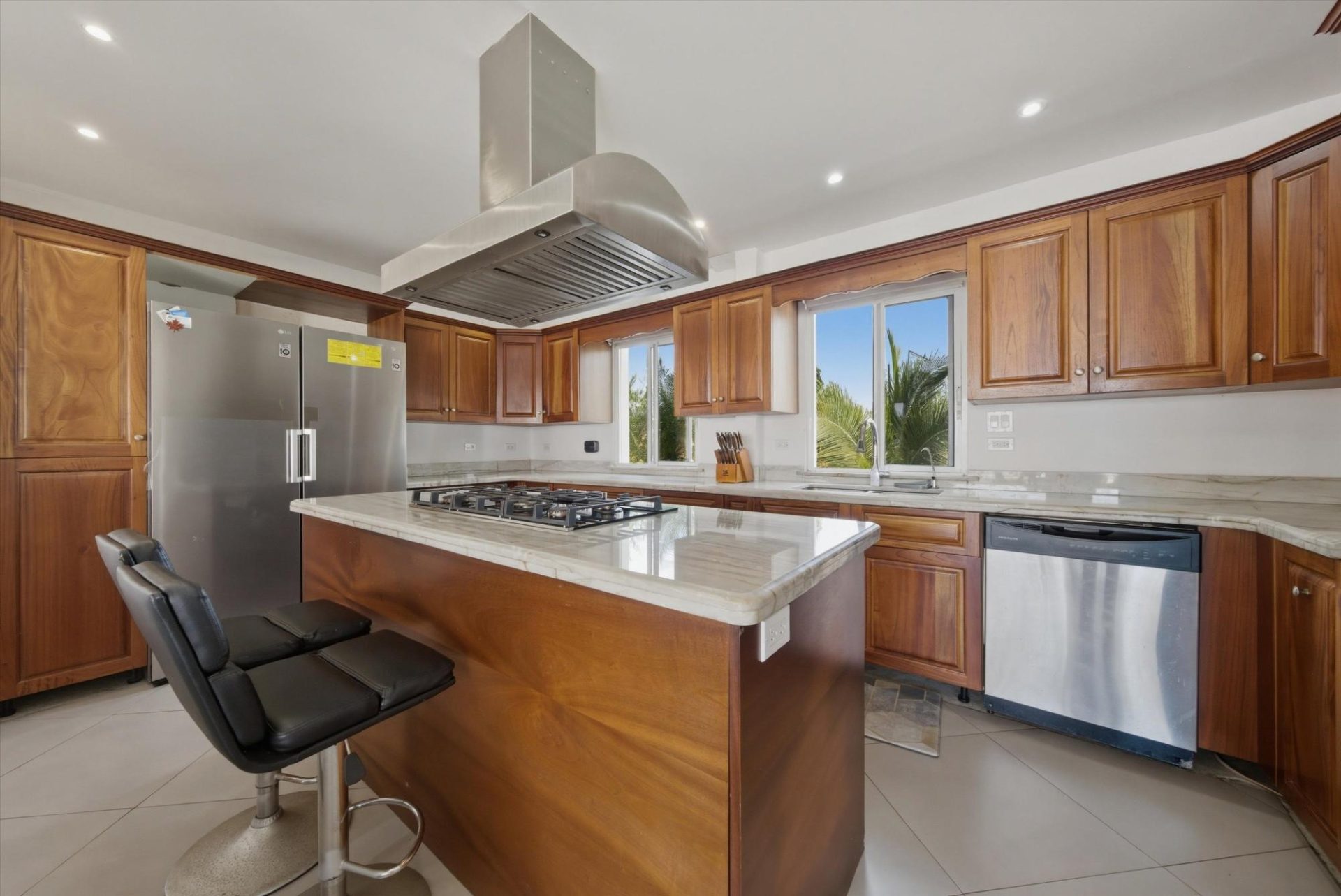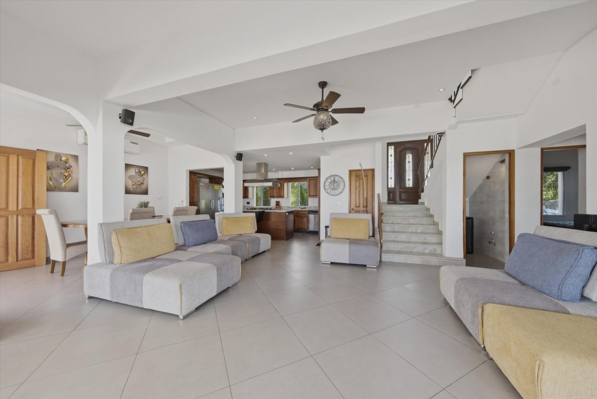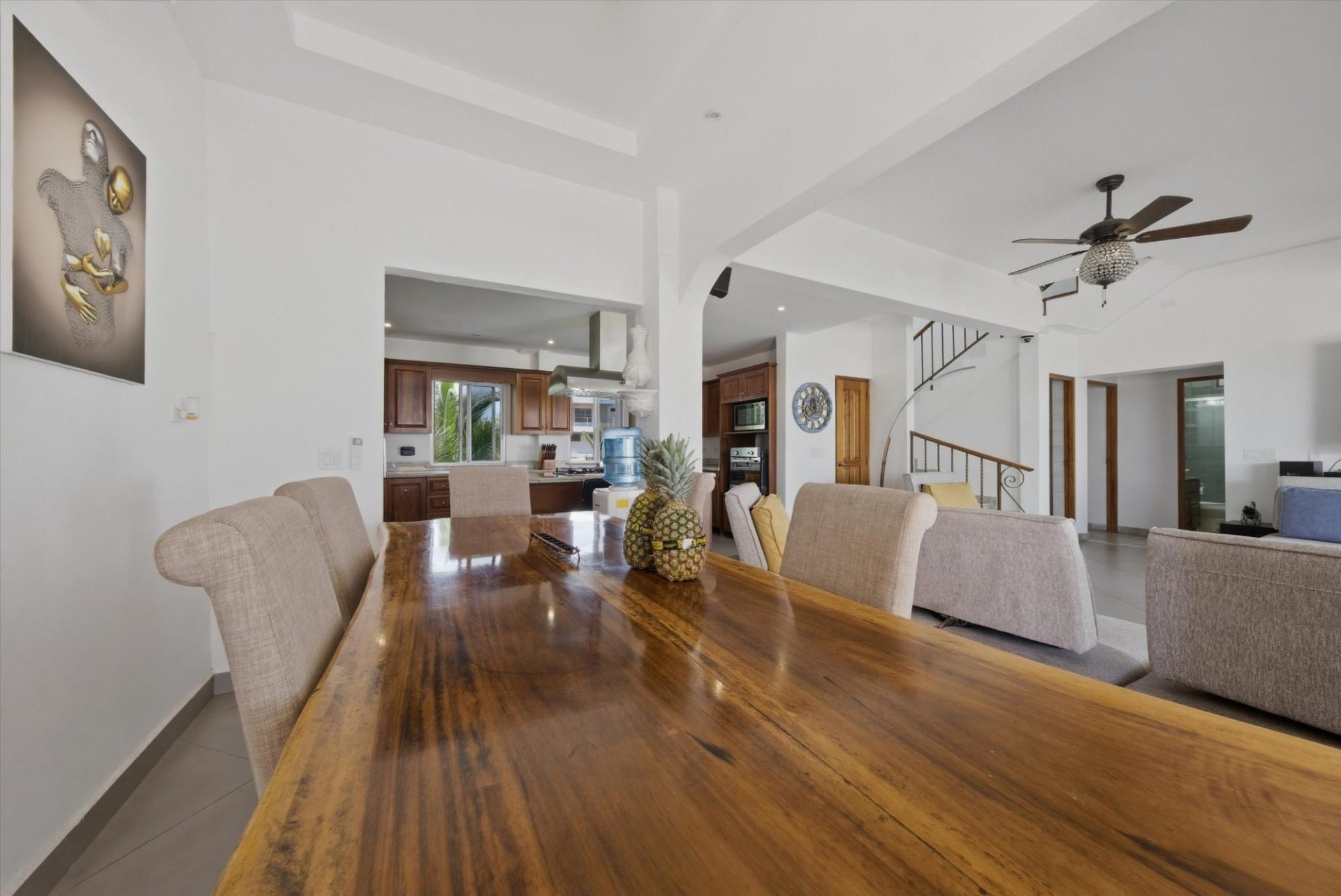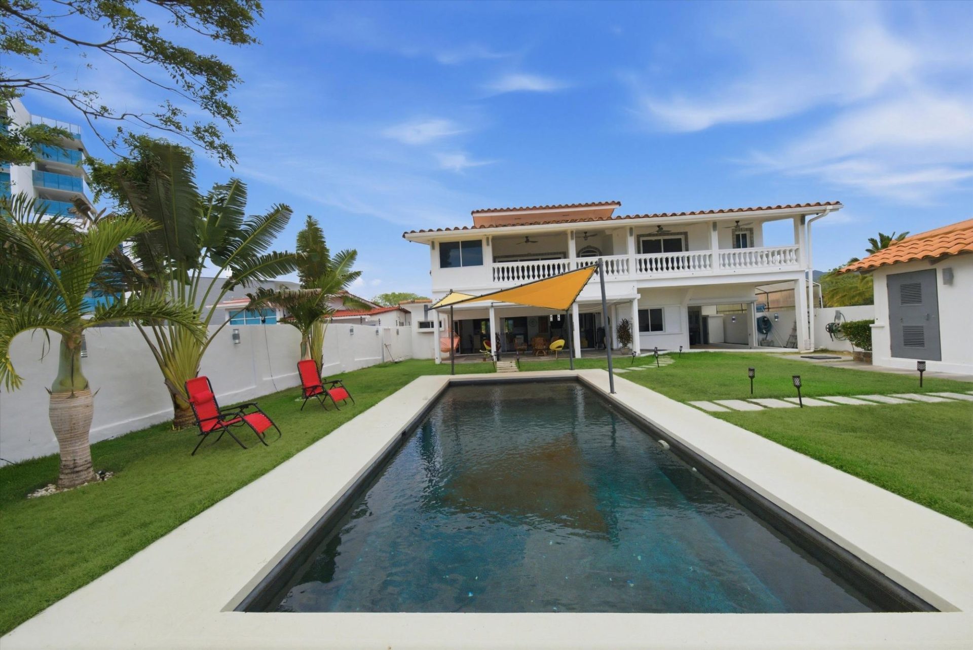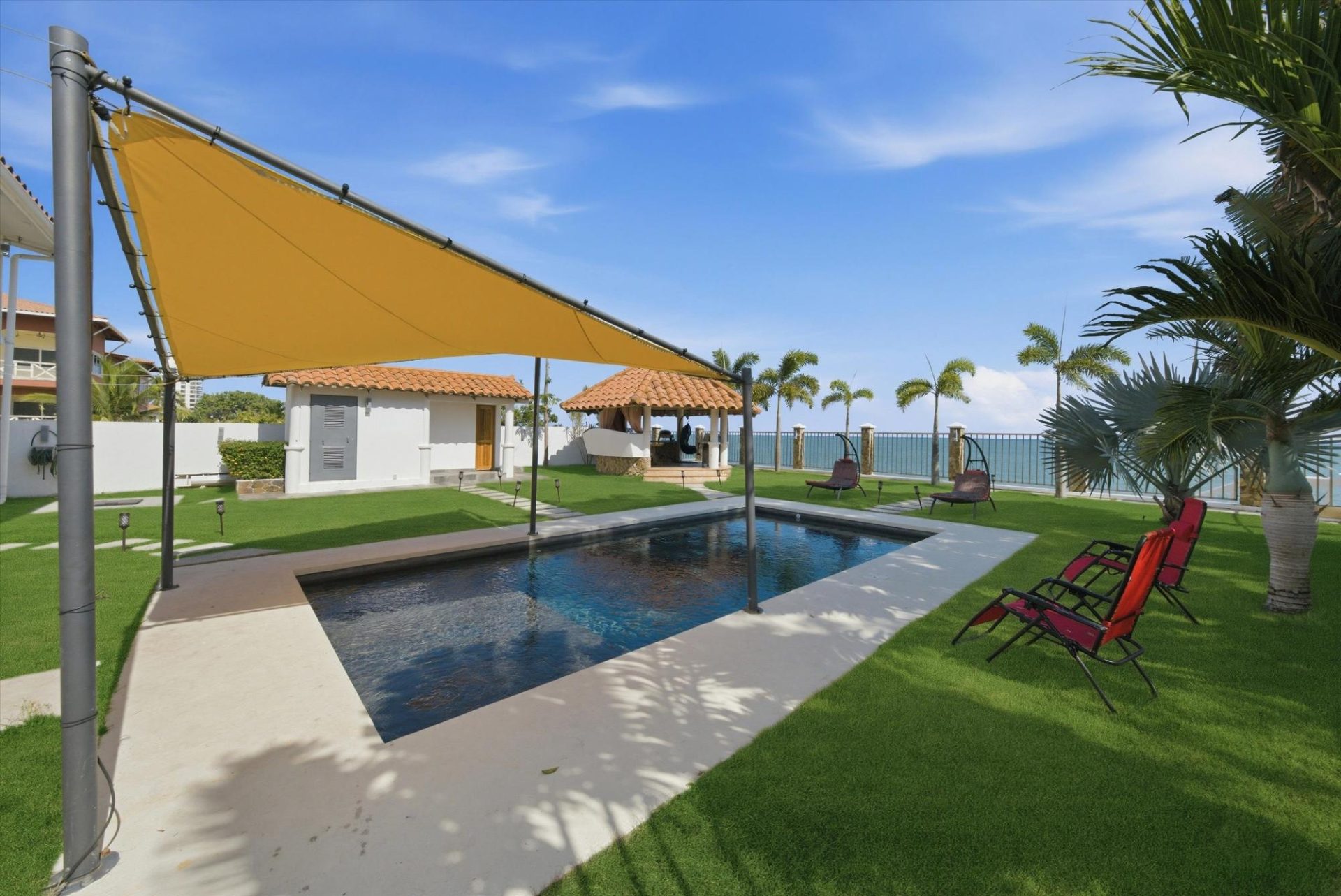 PROPIEDAD FRENTE AL MAR — PLAYA MALIBU, PANAMÁ Precio de lista: $950,000 | 5 Recámaras | 6 Baños + 3 Medios | Garaje para 2 Autos | 297 m² Construido | Lote de 1,250 m² | Construida en 2018 Ubicada directamente sobre la arena en Playa Malibu, esta propiedad de dos pisos ofrece 229 m² de espacio habitable interior distribuidos en dos plantas, además de un pabellón comedor circular independiente, todo en un lote frente al mar completamente cercado y con portón, a pasos del acceso privado a la playa. La planta baja se abre a través de paredes de vidrio plegables a una terraza cubierta (32 m²), difuminando la línea entre el interior y el exterior. La cocina cuenta con una isla de gas, encimeras de mármol, gabinetes de madera maciza y electrodomésticos de acero inoxidable. Una mesa de comedor de madera maciza con borde natural es el punto central del área de estar y comedor de planta abierta. Dos recámaras y dos baños completos completan la planta baja. En la planta superior, tres dormitorios —el más grande de más de 25 m²— comparten un balcón de 35,9 m² con vistas al mar. Un despacho con vistas al océano y varios baños completos y aseos completan la segunda planta. En el exterior, una piscina con toldos y tumbonas se ubica en el centro de un césped impecablemente cuidado. Un cenador al aire libre con techo de paja y cocina completa para barbacoa sirve como centro de entretenimiento. Un muro de contención reforzado de más de 10 metros de altura protege toda la propiedad. La playa que se extiende más allá es uno de los tramos ininterrumpidos más largos de Panamá: más de 8 km de costa del Pacífico transitable a pie hasta el río Chame. Construida en 2018. Totalmente amueblada. Lista para entrar a vivir. Garaje para dos coches. Casa de servicio en la propiedad. Con un precio de 950.000 dólares —construcción terminada en primera línea de playa— esta es una oportunidad única que no se puede replicar a este precio.