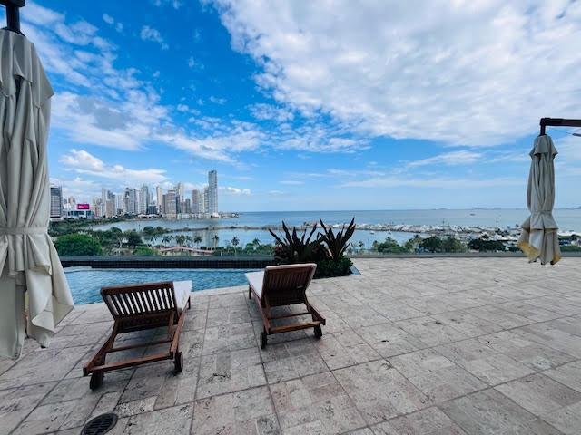 Se alquila apartamento finamente amoblado frente a la bahía. El apto de 169 mts. tiene 3 recámaras, 3 baños, sala-comedor, cocina con lavaplatos, área de lavandería, balcón, 2 estacionamientos y deposito. El edificio tiene seguridad, conserje, área social completa con piscina, jacuzzi, salón de fiesta, cto de juego para niños, cancha de tenis y cancha multiuso. El edificio se encuentra cerca del Parque Urraca y tiene cerca Bancos, Farmacias y Supermercados. Se puede mostrar los lunes, miércoles y viernes en la mañana; los jueves en la tarde y los sábado. Todas las visitas deben ser programadas con anticipación. Visítelo sin compromiso.